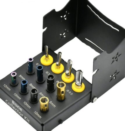 - Bone Collector Kit Dental Implant1, Use stopper drills for bone removal at the implant or bone removal site 2, It can automatically grind bone powder while drilling 3, PS: The stop ring should not be completely stuck in the drill. It only needs to be worn to drill and it will automatically snap-in. 4, The diameter of the drill can also fit the size of the implant and can be used rationally 5, The Stop ring is 5mm and 10mm for each row of the corresponding drill, if you want to drill in the drilling site and collect bone powder, you can use a 10mm stop ring 6, After using, disinfect bone chip maker tip with ultrasonic clean &autoclave.