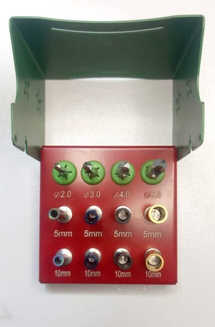 Osseodensification Burs KitDental Drill Burs KitDetails: 2x Parallel Pin 2x Parallel Pin XL 1x Ratchet Extender 2x Small Parallel Pin Tissue Punch: 1x Tissue Punch Drill Sizes: (1525) 2.0 mm,(2535) 3.0 mm, (3545) 4.0 mm, (4555) 5.0 mm. (1828) 2.3 mm,(2838) 3.3 mm, (3848) 4.3 mm, (4858) 5.3 mm. (2228) 2.5 mm,(3238) 3.5 mm, (4248) 4.5 mm, (5258) 5.5 mm. 1 Pilot Drill Drill speeds of 800-1500 rpm. Membrane Sinus Lift Lateral Reamer Drill Sizes: Membrane Sinus Lift Lateral Reamer Drill Ø 3.3mm, Membrane Sinus Lift Lateral Reamer Drill Ø 3.7mm, Membrane Sinus Lift Lateral Reamer Drill Ø 3.3mm (Head Size) Membrane Sinus Lift Lateral Reamer Drill Ø8.0 Membrane Sinus Lift Lateral Reamer Drill Ø6.0 Lateral Approach Cutter Membrane Ø8.0mm