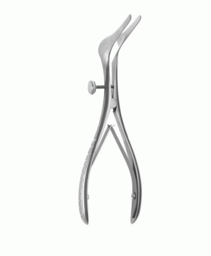 The long, serrated handles ensure a secure grip and precise control during procedures. Surgeons can insert the closed blades into the nasal cavity and open them gradually to widen the passage and improve visibility. The smooth, blunt edges of the blades minimize tissue trauma while allowing a clear view of the nasal cavity.