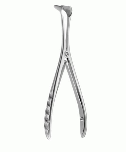 The instrument features ergonomic handles with a long profile and outer serrations that provide superior grip and control during procedures. Its blunt-edged cone blades are designed to open the nasal passage safely, minimizing tissue trauma while allowing clear visualization of the nasal cavity.