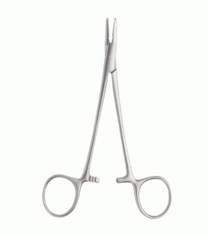 Evo Surgix Collier Needle Holder 13cm is designed to securely grasp and control surgical needles during suturing procedures. It features serrated jaws with a central groove for a firm, reliable grip and ratcheted handles for self-retaining function. The multi-position ratchet allows controlled pressure and smooth release. Handcrafted from German stainless steel with a satin finish for precision and durability.