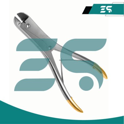 Evo Surgix Brand Pin Cutter T.C with Tungsten Carbide Inserts double action pin cutter is designed for cutting the surgical pins, and it will assist in several surgical procedures. The procedures that require fracture and hip repairing commonly include the usage of double action pin cutter. Handcrafted With German Stainless Steel. Satin Finish with Gold Plated Handle.