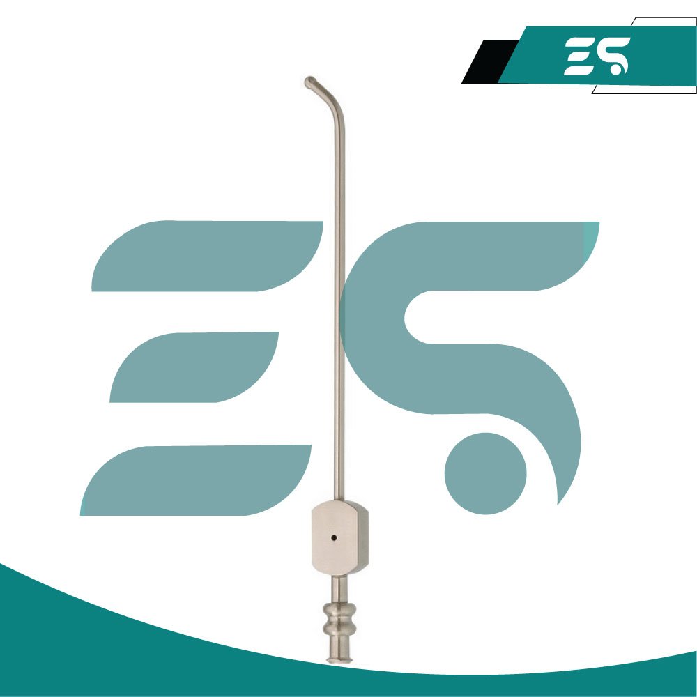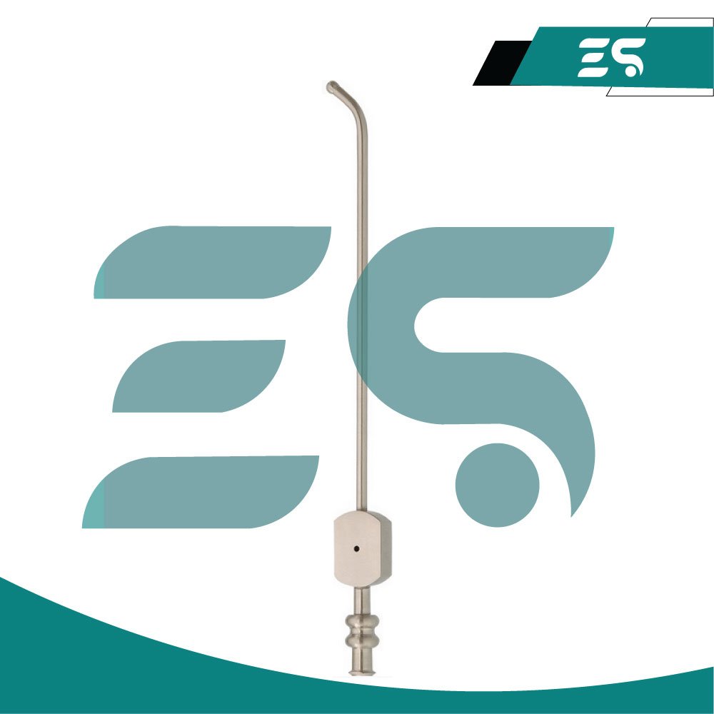 EVOSURGIX Brand Suction Tube Angled Tip With Stylet is a specialized device, tool, product, instrument that surgeons and doctors in multiple areas use to aspirate fluids, debris, and blood from multiple cavities to achieve a clearer view of the operating field. It is used to remove fluid, debris, and foreign objects from the ear canal or nasal passages. The thumb plate includes a finger cutoff for controlling suction. Its angled design ensures the view is not obstructed, and it includes a stylet to remove trapped debris inside the suction tube. Handcrafted with German Stainless Steel. Satin Finish. Original Pics are Attached.